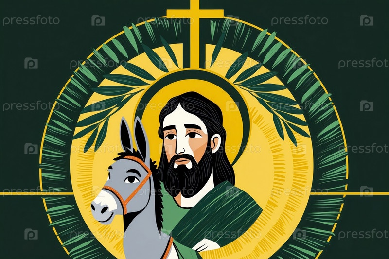Традиционное христианское Пальмовое воскресенье, триумфальное вступление Иисуса Христа в Иерусалим AI Generative