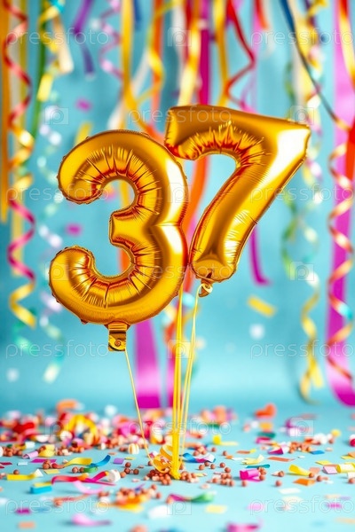 Гелий день рождения воздушный шар номер тридцать семь, фигура золотой буквы 37 праздник праздничный фон
