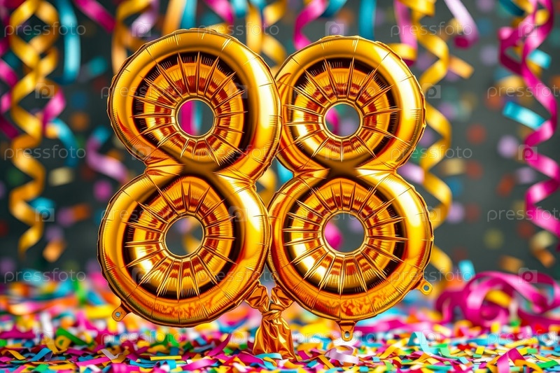 Гелиевый баллон на день рождения номер восемьдесят восьмой, фигура золотой буквы 88 праздник праздничный фон
