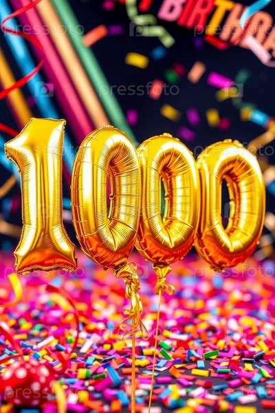 Гелийный день рождения шарик формы номер один тысяча, золотые буквы фигура 100 праздник праздничный фон декор