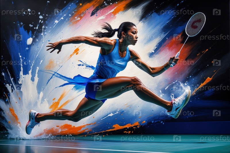 Женщина Спортсмен Игрок Выполнить Летние Олимпийские игры, Чемпионат мира по бадминтону Соревнования женского спорта AI Generative