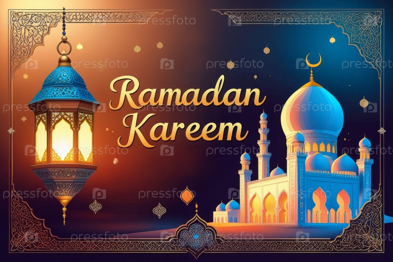 Поздравительная карточка с традиционным мусульманским исламским праздником Рамадан с вероучениями символ веры ИИ генеративный