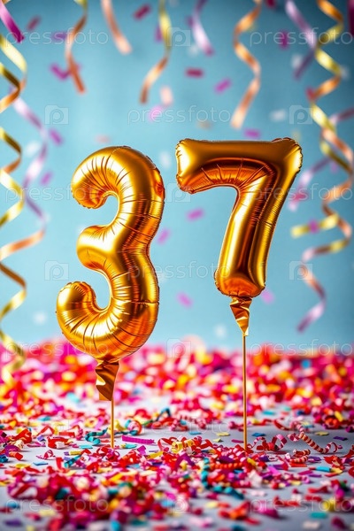 Гелий день рождения воздушный шар номер тридцать семь, фигура золотой буквы 37 праздник праздничный фон