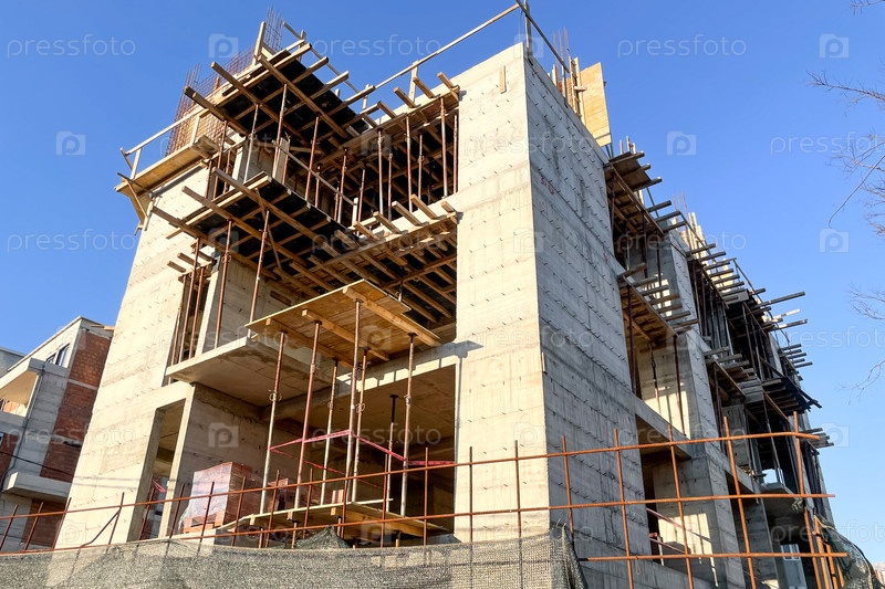 Посмотреть ландшафт строительной площадки жилой бетонный трехэтажный дом