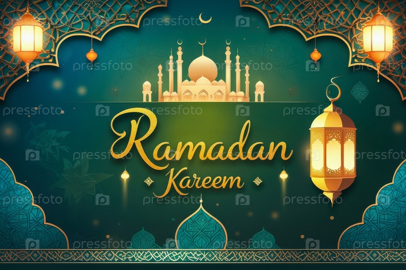 Поздравительная карточка с традиционным мусульманским исламским праздником Рамадан с вероучениями символ веры ИИ генеративный