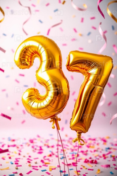 Гелий день рождения воздушный шар номер тридцать семь, фигура золотой буквы 37 праздник праздничный фон