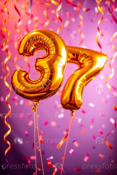 Гелий день рождения воздушный шар номер тридцать семь, фигура золотой буквы 37 праздник праздничный фон
