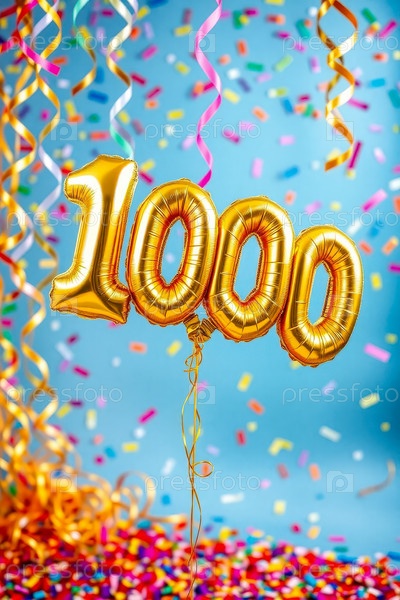 Гелийный день рождения шарик формы номер один тысяча, золотые буквы фигура 100 праздник праздничный фон декор