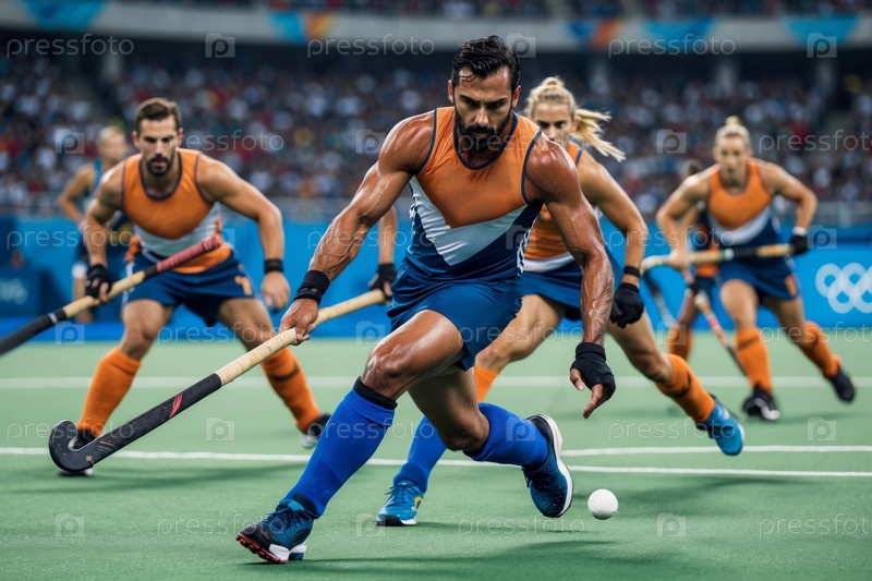 AI Generative Мужская хоккейная команда играет на стадионе, летние Олимпийские игры соревнования