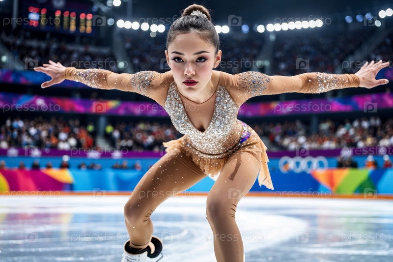 AI Generative Женщина-скейтер катается на коньках, зимние Олимпийские игры соревнования по фигурному катанию