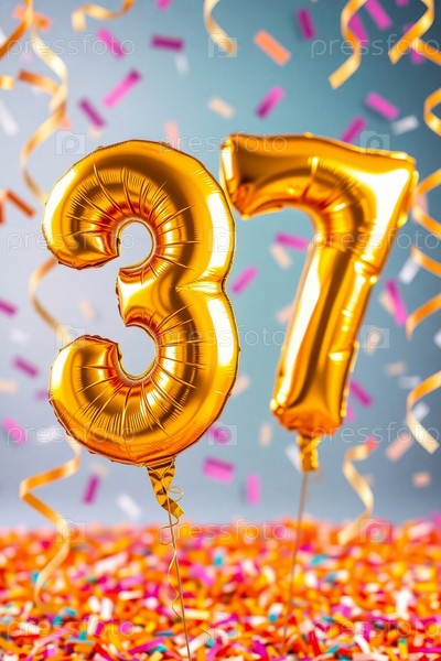 Гелий день рождения воздушный шар номер тридцать семь, фигура золотой буквы 37 праздник праздничный фон