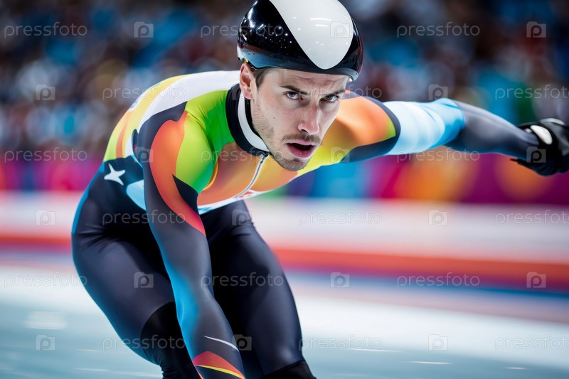 Генеративные зимние Олимпийские игры соревнования по короткому треку, мужской спортсмен фигурист кататься на коньках AI skate On Ice Skating Rink