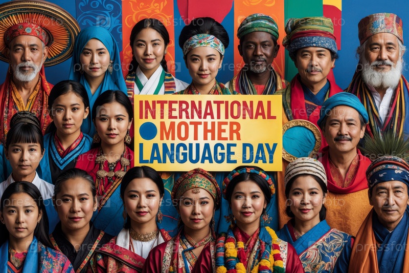 AI Generative Международный день родного языка поздравительная карточка, люди говорят на разных языках