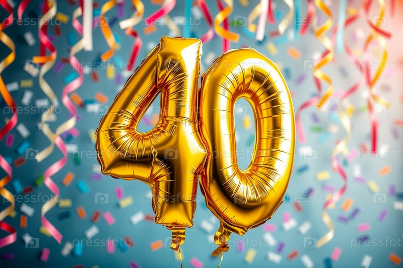 Гелий день рождения воздушный шар формы номер сорок, золотые буквы фигура 40 праздник праздничный фон