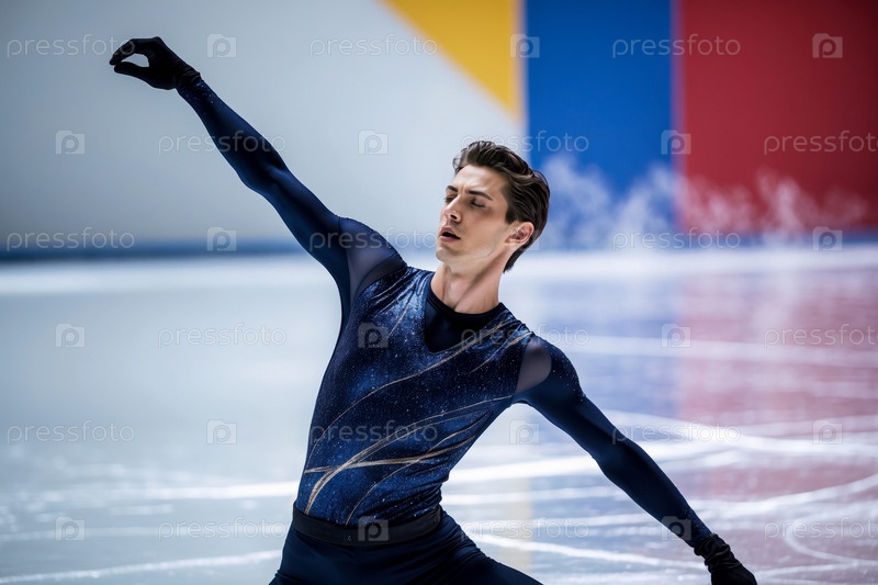 ИИ генеративный Человек конькобежник катается на катке, зимние Олимпийские игры соревнования по фигурному катанию