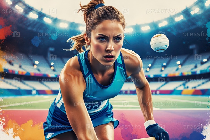Женская команда по хоккею на поле играет в стадионе, летние Олимпийские игры соревнования AI Generative