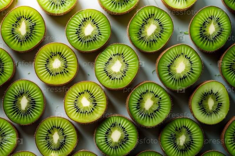 Плоский укладный рисунок спелых фруктов киви, верхний вид на лето органический свежий фон AI Generative