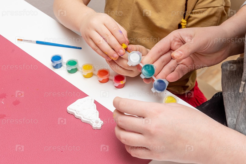 Мама с дочерью семья украшает игрушки для рождественской елки ручной работы, женщина и девочка проводят время вместе