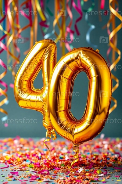 Гелийный день рождения шарик формы номер сорок, золотые буквы фигура 40 праздник праздничный фон декор