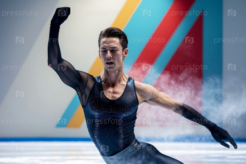 ИИ генеративный Человек конькобежник катается на катке, зимние Олимпийские игры соревнования по фигурному катанию