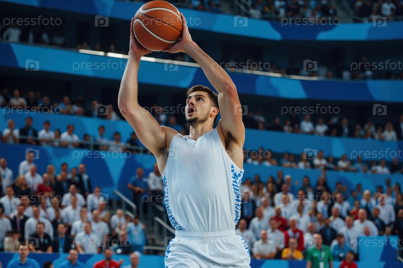 AI Generative NBA мужская баскетбольная команда на стадионе чемпионата, летние Олимпийские игры соревнования