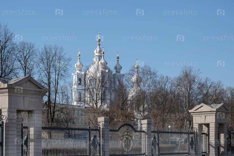 Санкт-Петербург, Россия - 28 марта 2026 года.Смольный собор Вид с Смольной набережной