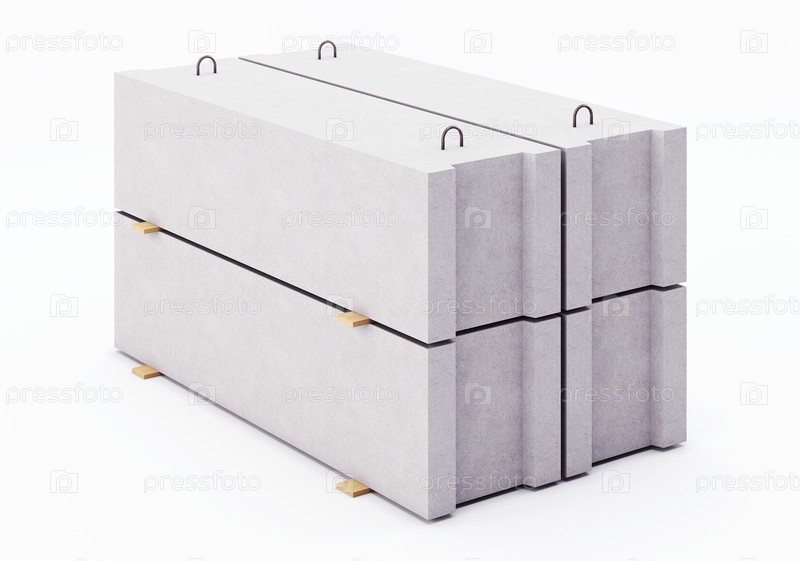 Бетонные фундаментальные блоки на белом фоне. 3D-рендеринг