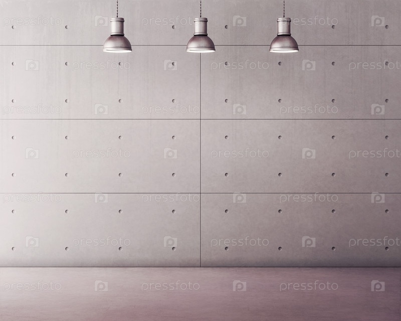 Бетонные панели и пол с лампами. 3D-рендеринг