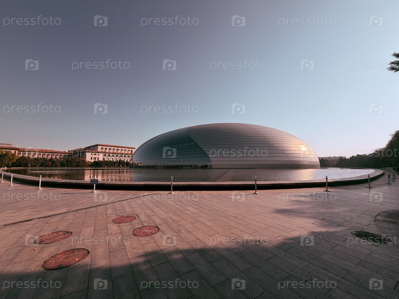 Национальный центр исполнительских искусств в Пекине днем — архитектура «Яйцо» на воде, Китай