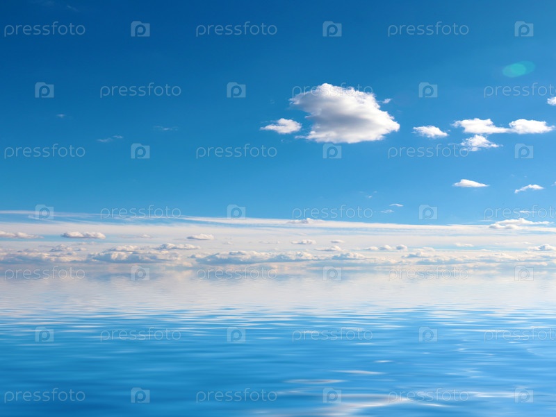 Прекрасное облачное небо отражается на спокойной поверхности моря