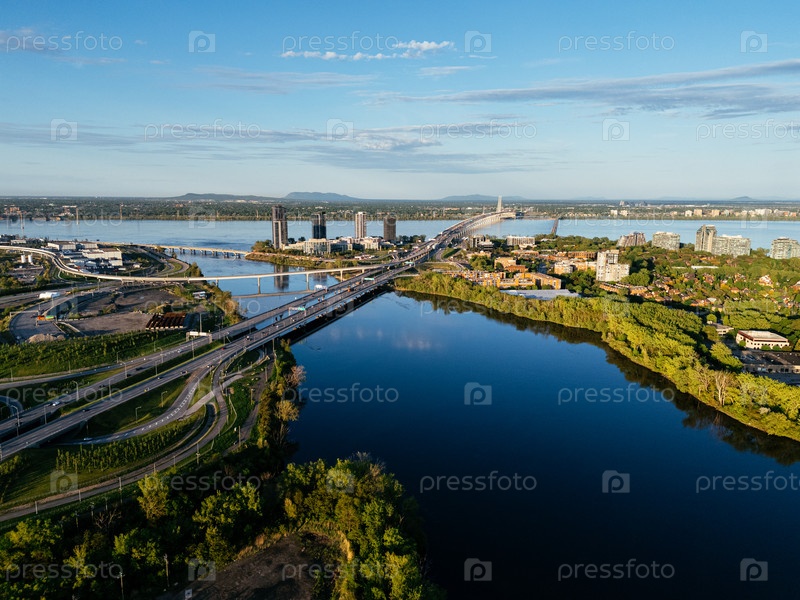 Вид с воздуха района Верден возле Иль-де-Соура и Лашинского канала в Монреале, Квебек, Канада. g