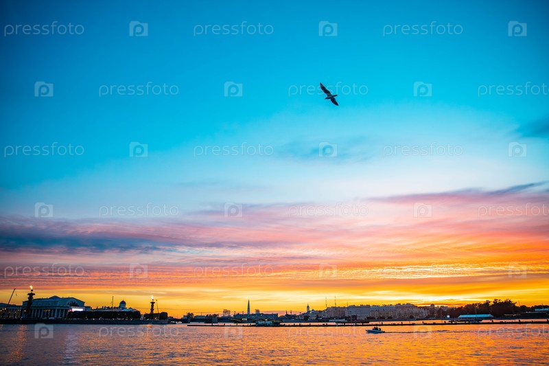Стрелка Васильевского острова, Ростральные колонны и Биржа на закате