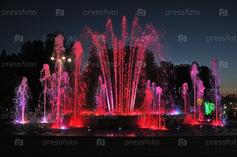 Светомузыкальный фонтан в парке Анапы ночью