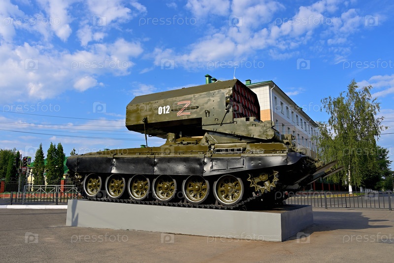 Тяжелая огнеметная система на постаменте в Костроме