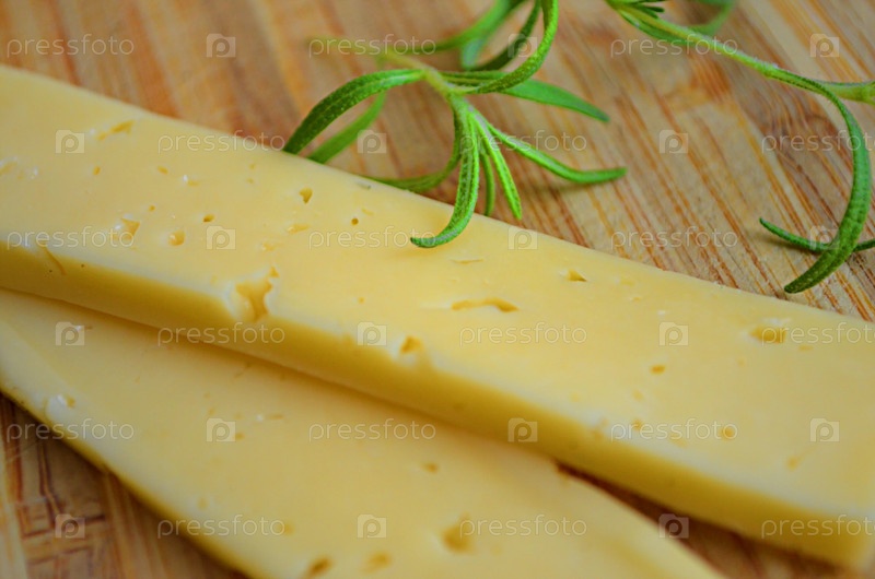 Нарезанные ломтики сыра и веточки розмарина крупным планом
