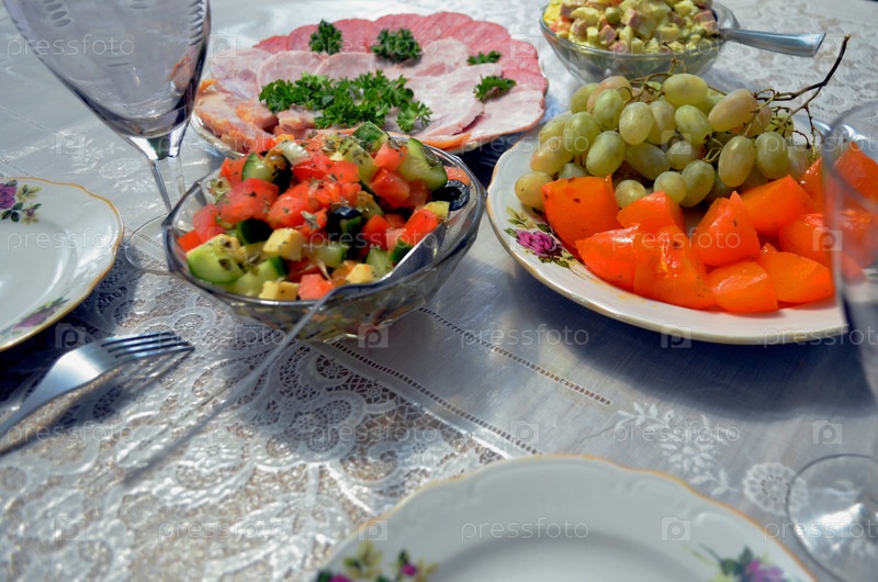 Салаты и закуски на столе