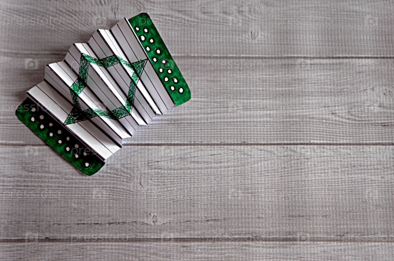 Гармошка, сделанная из бумаги, лежит на деревянном фоне