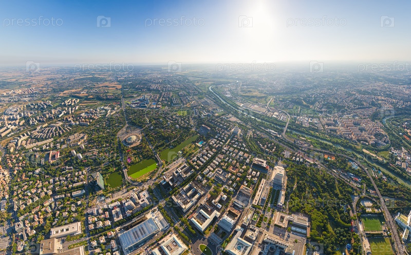 Рим, Италия Всемирный выставочный квартал - EUR Панорама города летом утром Солнечная погода Вид с воздуха