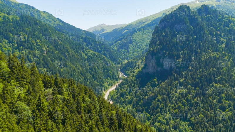 Альтиндере, провинция Трабзон, Турция. Парк долины Альтиндере. Панорамные виды в течение дня. Летание по долине. Изолоченный лес на склонах, взгляд с воздуха