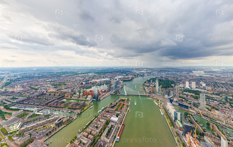Роттердам, Нидерланды Панорама летнего города в дождливую погоду Облака Вид с воздуха