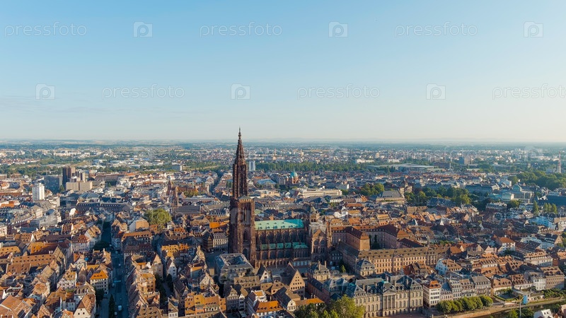 Страсбург, Франция.Страсбургский собор - построен в готическом стиле, собор XIII века.Летнее утро, вид с воздуха