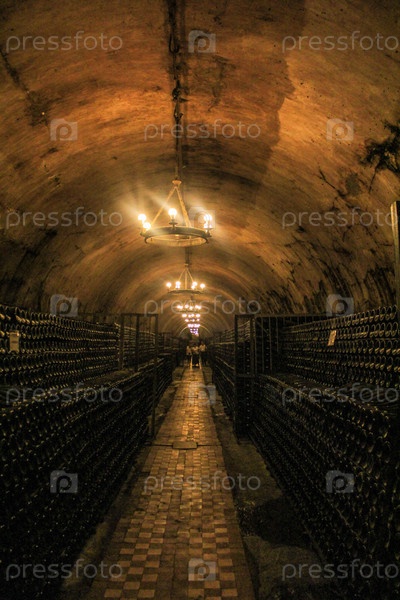 Туннель со стелажами вина, Абрау-Дюрсо