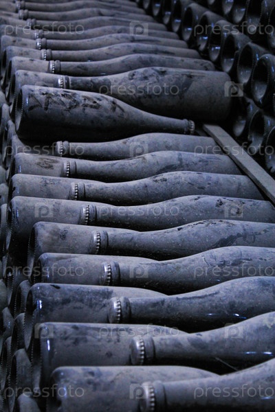 Хранение бутылок вина на заводе шампанских вин в Абрау-Дюрсо, Краснодарский край