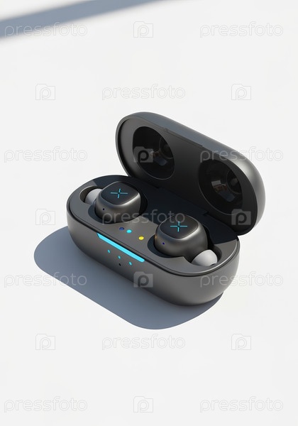 Беспроводные наушники в открытом корпусе на белом фоне с минималистическим дизайном