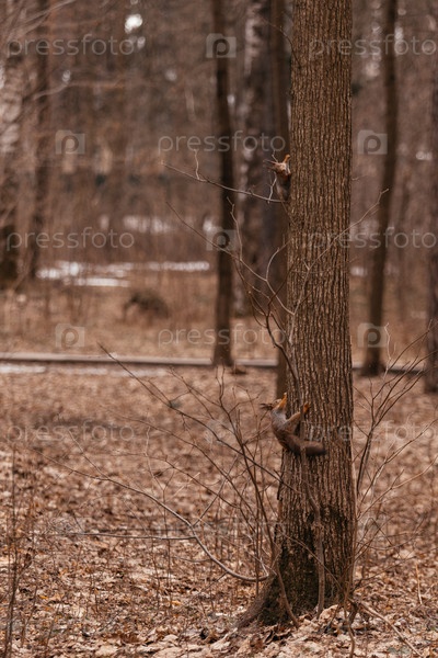 Белки-исследователи: вертикальный маршрут по стволу в тихом лесу