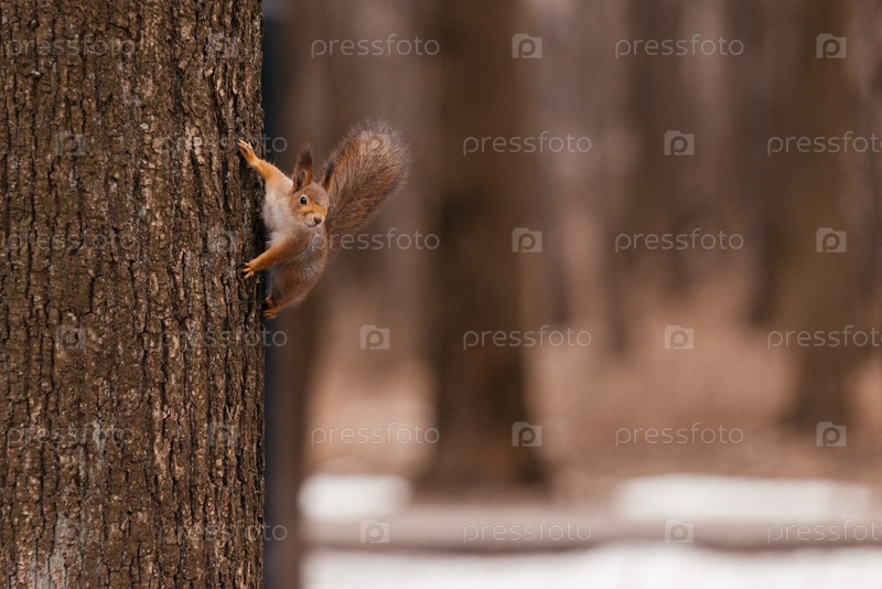 белка на стволе
