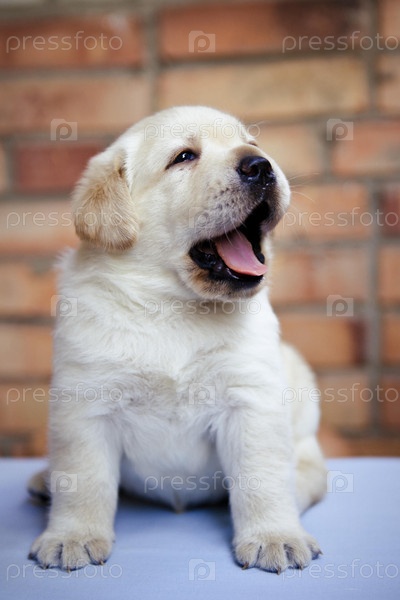 щенок лабрадора на фоне кирпичной стены
