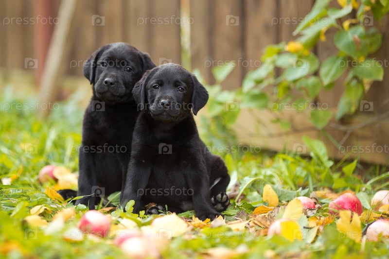 Осеннее любопытство: два щенка лабрадора на лужайке