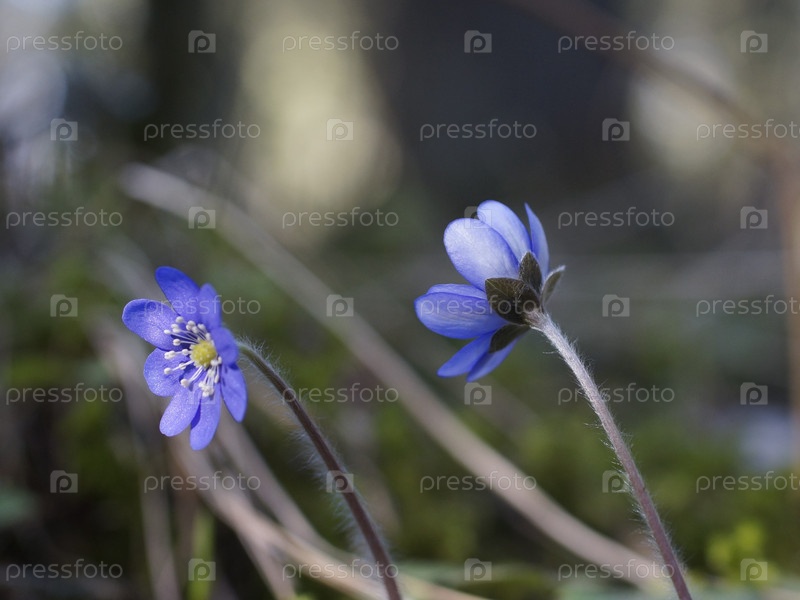 Благородный печеночник (Hepatica nobilis) в солнечных лесах