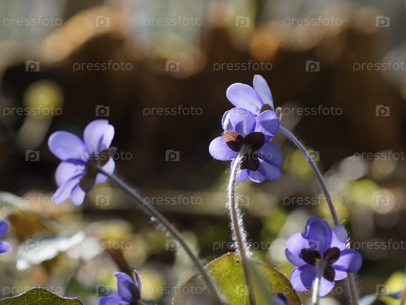 Благородный печеночник (Hepatica nobilis) в солнечных лесах